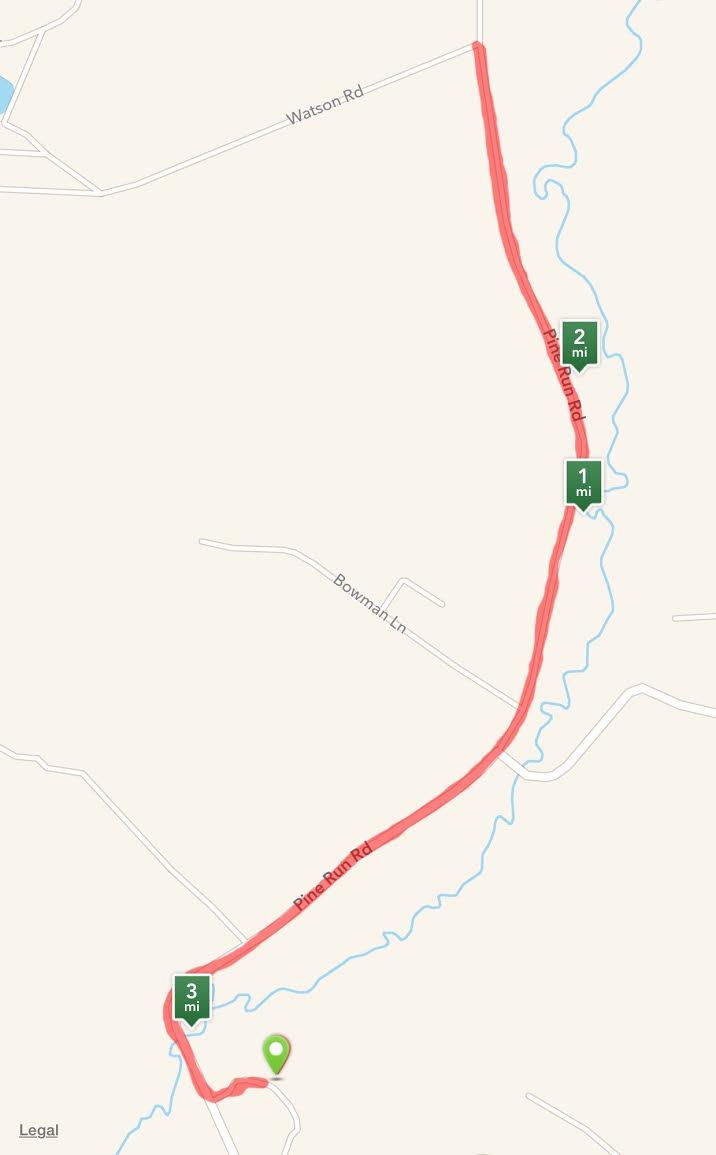 The 5K race is on a certified course that begins in Kunkle Park, proceeds down Pine Run Road for 2.5K and returns to finish at Kunkle Park. The course has slight elevation and is on a beautiful country road.